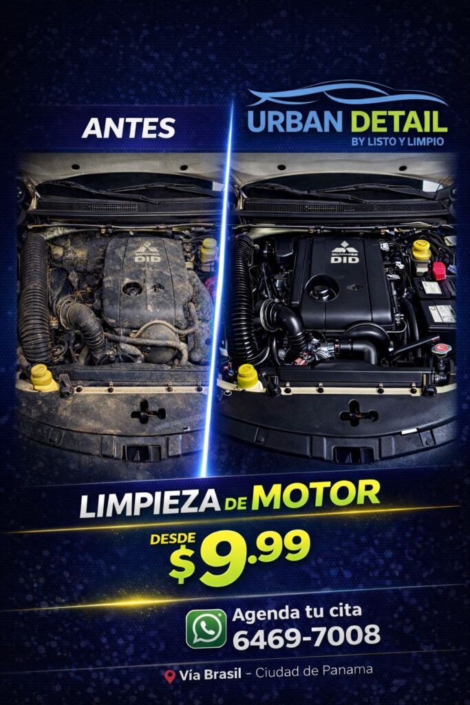 En Listo y Limpio, transformamos el compartimento del motor utilizando técnicas avanzadas de limpieza técnica y productos dieléctricos en la Ciudad de Panamá. No es una limpieza de autos convencional, es un proceso de restauración técnica que elimina grasa y suciedad acumulada para quienes buscan el máximo rendimiento y cuidado preventivo a través de una limpieza profunda de autos.